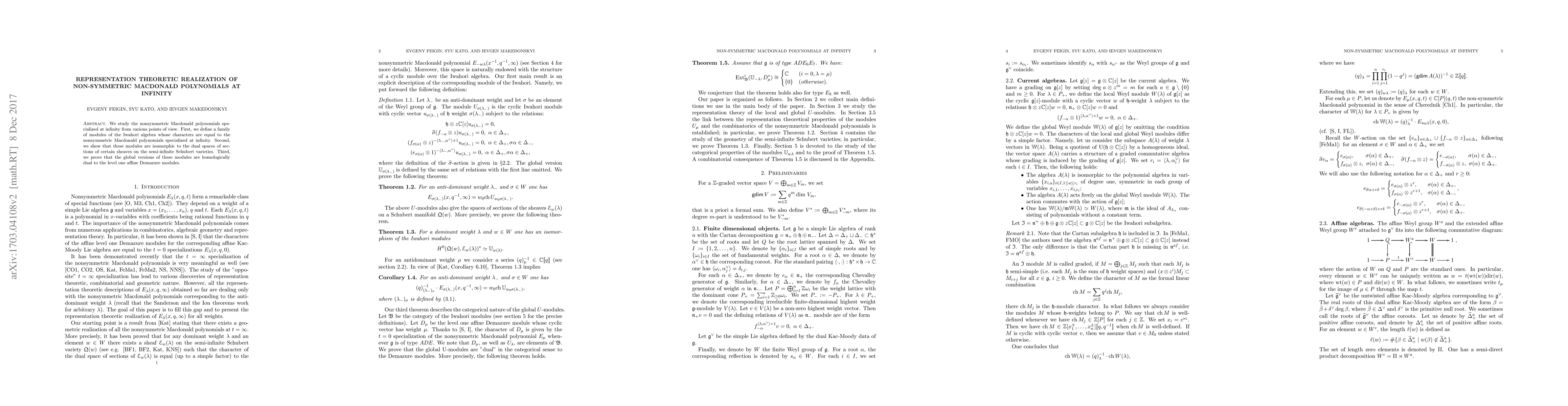 Researchers study nonsymmetric Macdonald polynomials specializing at infinity, linking them to modules of the Iwahori algebra and showing they are homologically dual to certain affine Demazure modules.