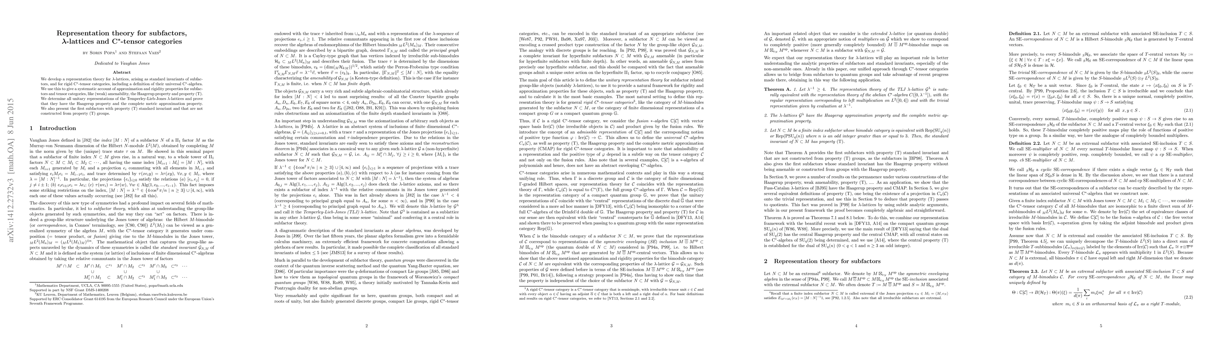 This paper develops a representation theory for $\lambda$-lattices and rigid C*-tensor categories, defining their universal C*-algebra and exploring approximation and rigidity properties. The study determines all unitary representations of Temperley-Lieb-Jones $\lambda$-lattices, proving their Haagerup and complete metric approximation properties. It also introduces the first subfactors with property (T) standard invariant not derived from property (T) groups.