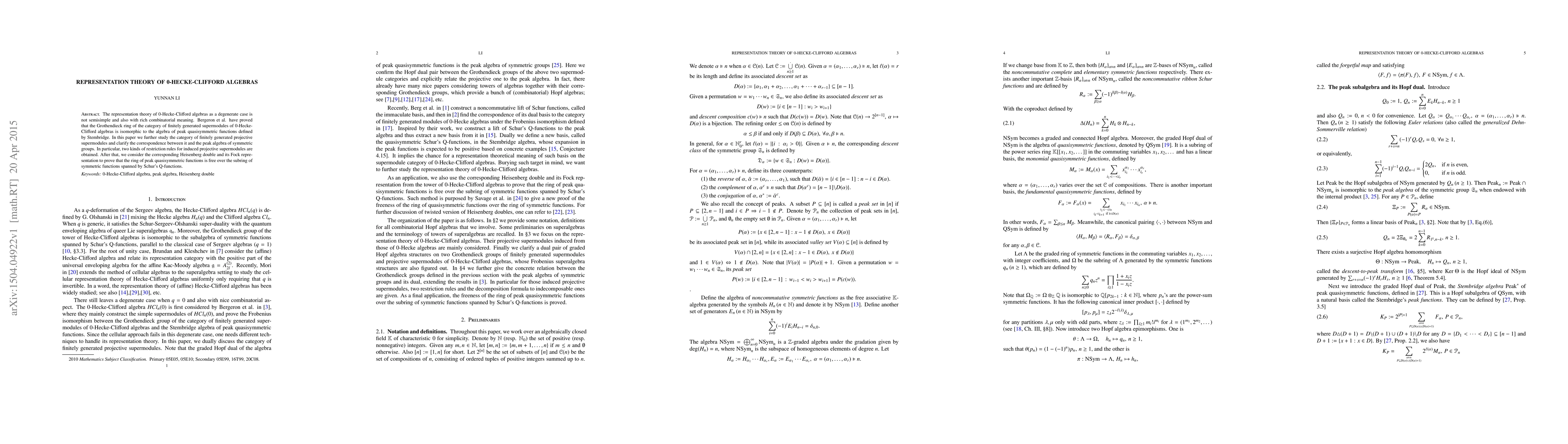 This paper explores the representation theory of 0-Hecke-Clifford algebras, focusing on the category of finitely generated projective supermodules and their correspondence with the peak algebra of symmetric groups. It establishes restriction rules for induced projective supermodules and demonstrates that the ring of peak quasisymmetric functions is free over the subring of symmetric functions generated by Schur's Q-functions.