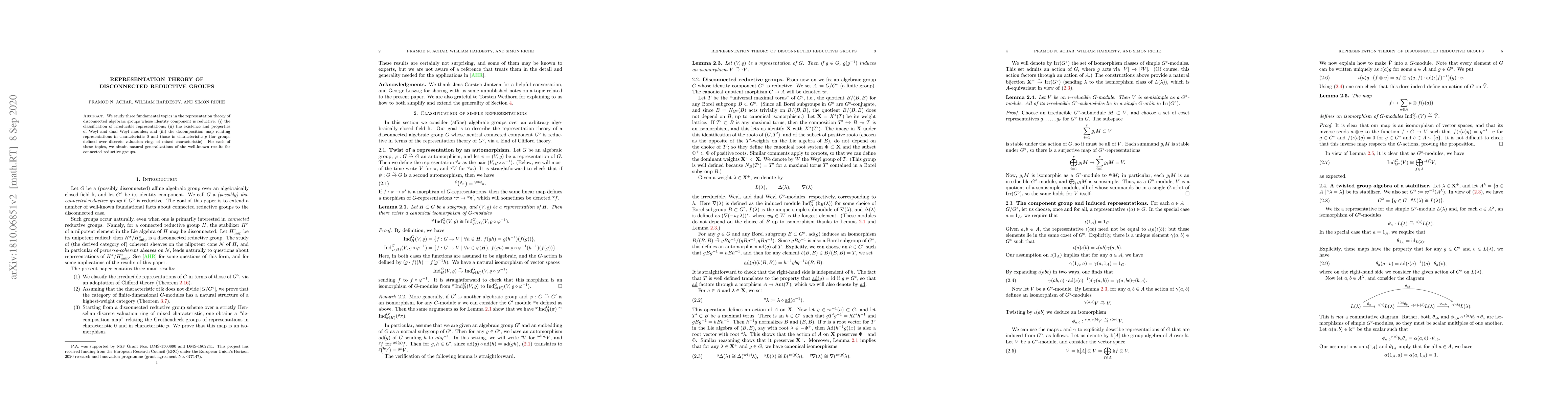 We study three fundamental topics in the representation theory of disconnected algebraic groups whose identity component is reductive: (i) the classification of irreducible representations; (ii) the existence and properties of Weyl and dual Weyl modules; and (iii) the decomposition map relating representations in characteristic $0$ and those in characteristic $p$ (for groups defined over discrete valuation rings). For each of these topics, we obtain natural generalizations of the well-known results for connected reductive groups.