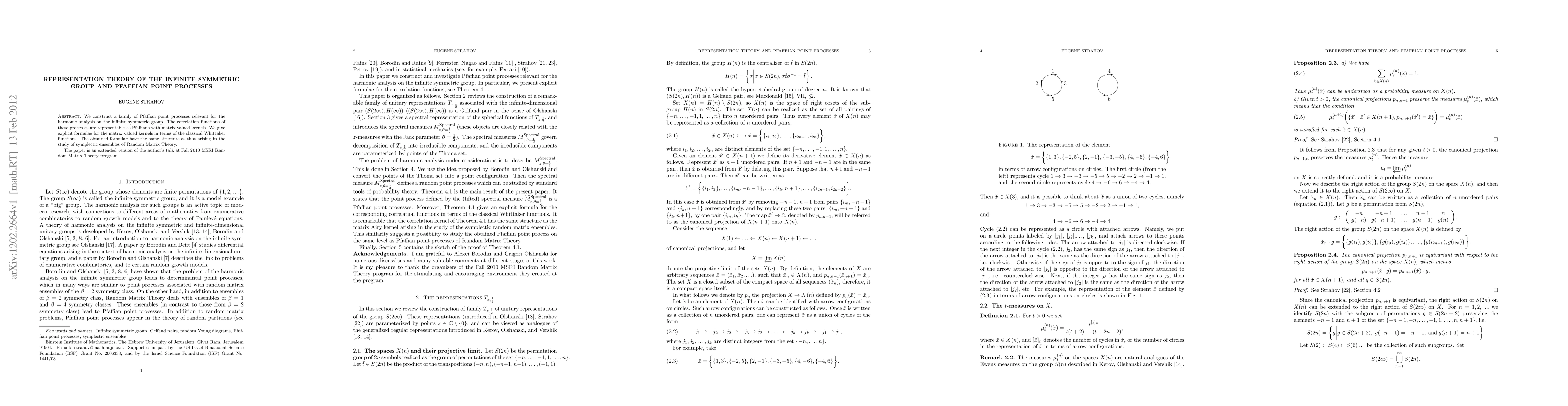 We construct a family of Pfaffian point processes relevant for the harmonic analysis on the infinite symmetric group. The correlation functions of these processes are representable as Pfaffians with matrix valued kernels. We give explicit formulae for the matrix valued kernels in terms of the classical Whittaker functions. The obtained formulae have the same structure as that arising in the study of symplectic ensembles of Random Matrix Theory. The paper is an extended version of the author's talk at Fall 2010 MSRI Random Matrix Theory program.
