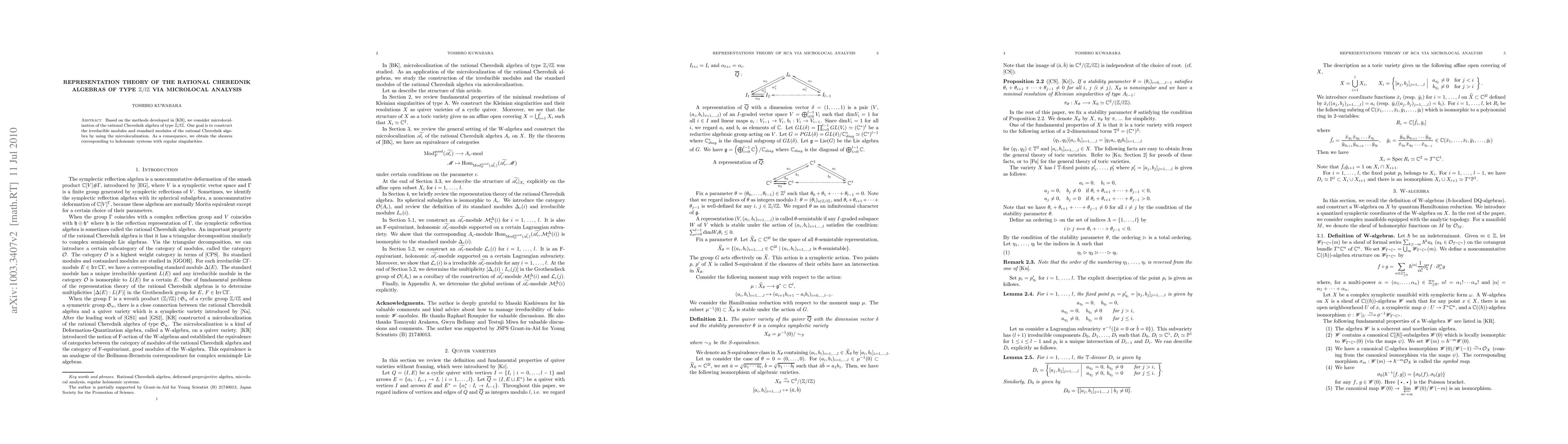 This paper utilizes microlocal analysis to construct irreducible and standard modules for rational Cherednik algebras of type $\Z/l\Z$, building on techniques from [Kashiwara-Rouquier], and it derives sheaves of microlocal systems for holonomic systems with regular singularities.