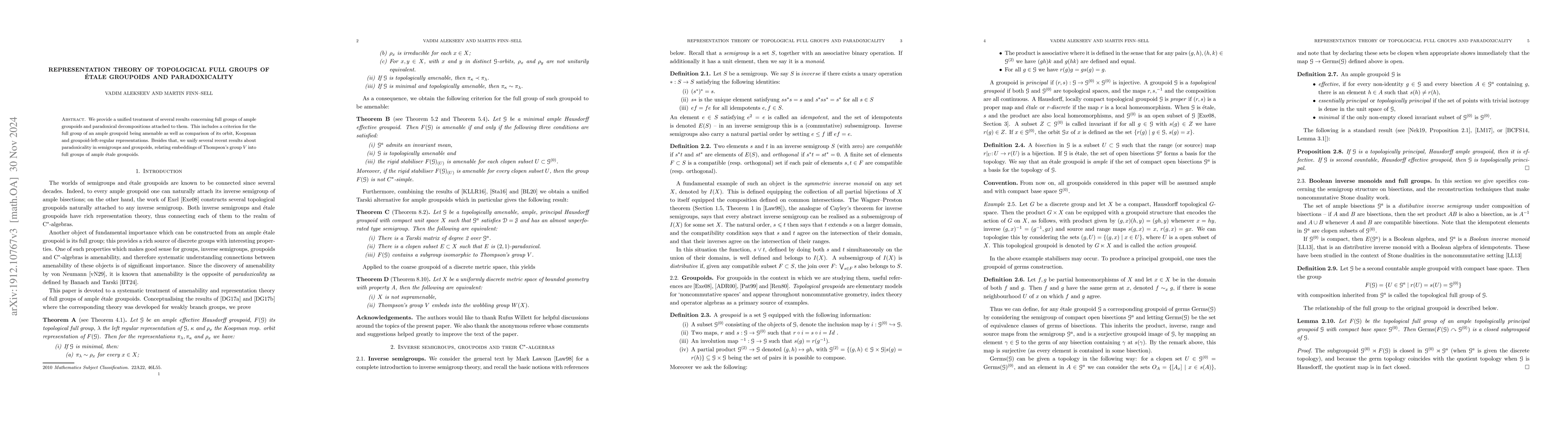 This paper unifies results on full groups of ample \'etale groupoids, including criteria for amenability and comparisons of various representations. It also ties together recent findings on paradoxicality in semigroups and groupoids, particularly the embeddings of Thompson's group V.