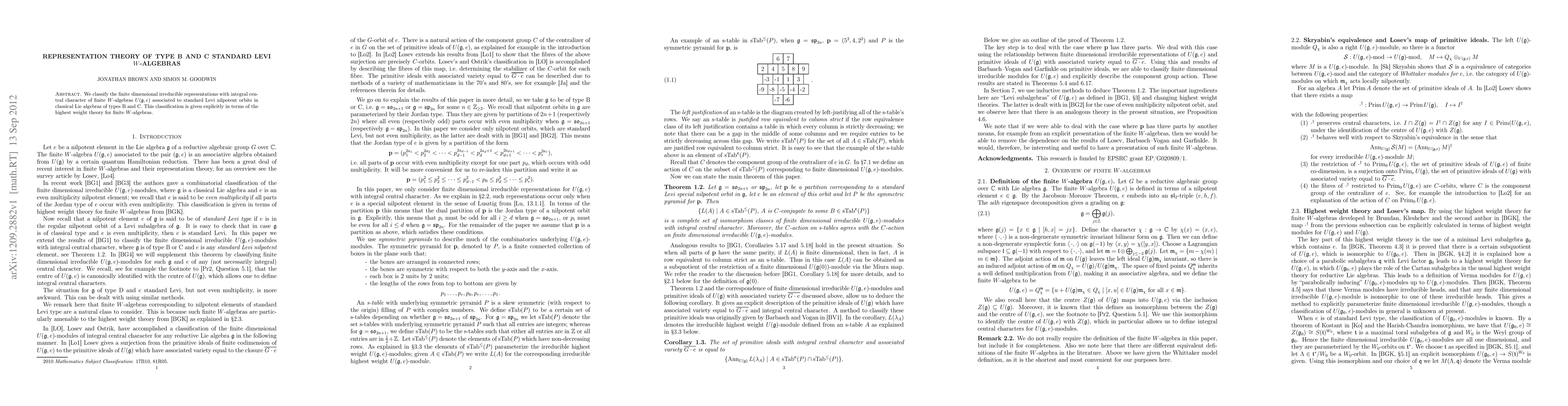 This paper classifies finite dimensional irreducible representations with integral central character of $U(\mathfrak g,e)$ for standard Levi nilpotent orbits in types B and C Lie algebras, providing an explicit highest weight theory description.