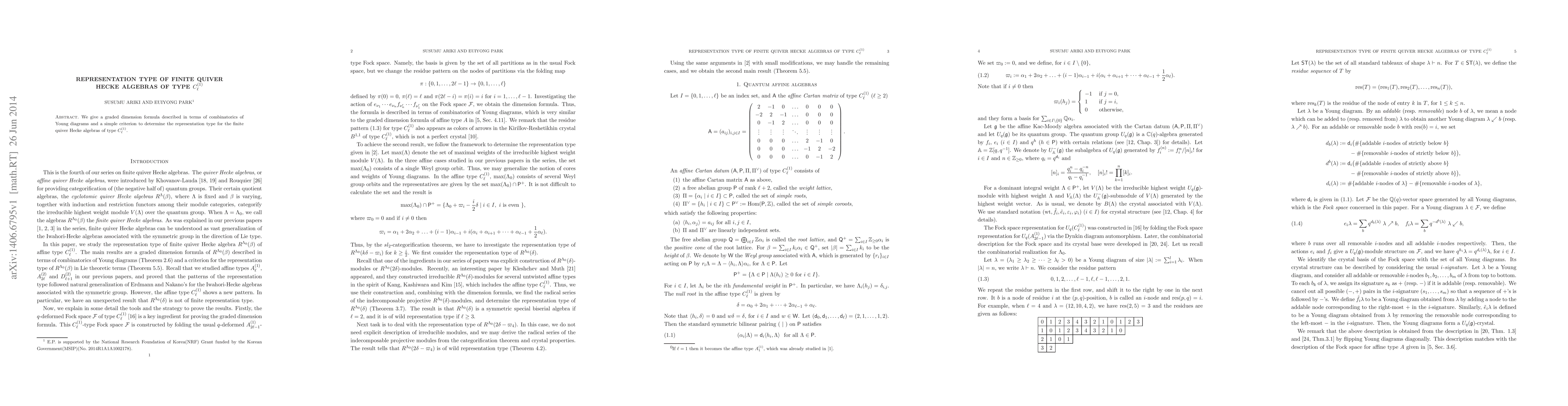 The paper provides a graded dimension formula using Young diagrams and offers a criterion to determine the representation type for finite quiver Hecke algebras of type $C_{\ell}^{(1)}$. It concludes that these algebras are of finite representation type.