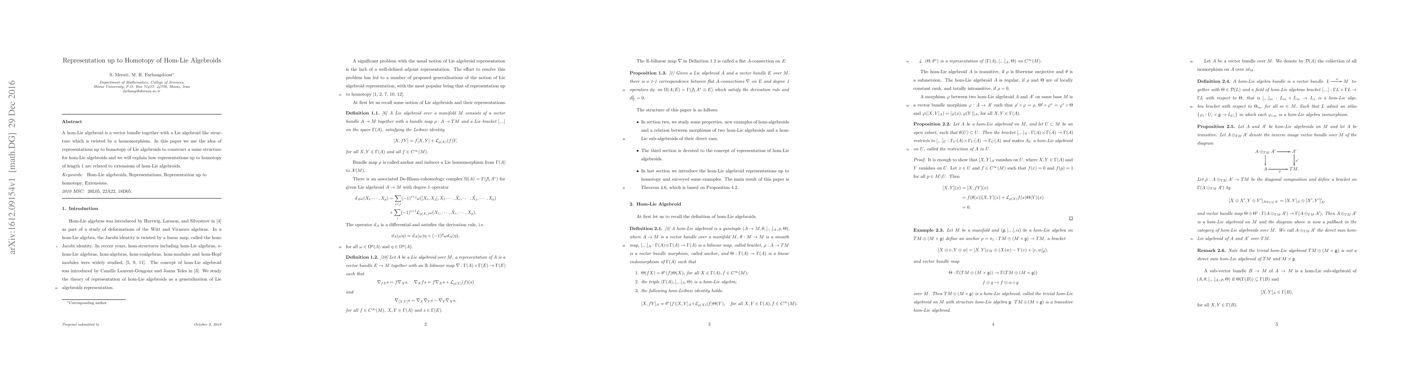 A hom-Lie algebroid is a vector bundle together with a Lie algebroid like structure which is twisted by a homomorphism. In this paper we use the idea of representations up to homotopy of Lie algebroids to construct a same structure for hom-Lie algebroids and we will explain how representations up to homotopy of length 1 are related to extensions of hom-Lie algebroids.