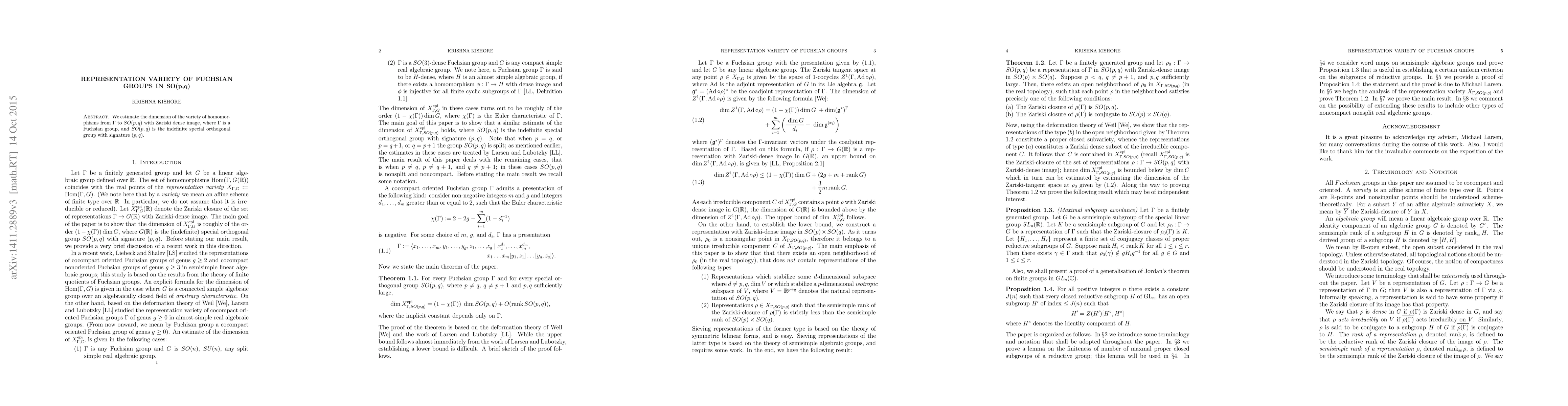 We estimate the dimension of the variety of homomorphisms from $\Gamma$ to $ SO(p,q)$ with Zariski dense image, where $\Gamma$ is a Fuchsian group, and $SO(p,q)$ is the indefinite special orthogonal group with signature $(p,q)$.
