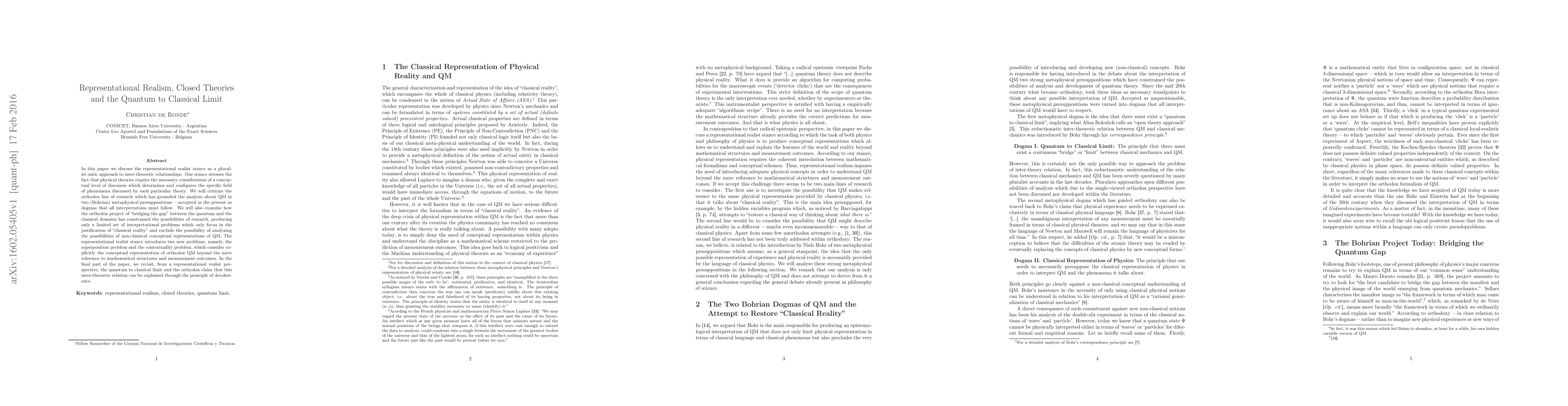 In this paper we discuss the representational realist stance as a pluralist ontic approach to inter-theoretic relationships. Our stance stresses the fact that physical theories require the necessary consideration of a conceptual level of discourse which determines and configures the specific field of phenomena discussed by each particular theory. We will criticize the orthodox line of research which has grounded the analysis about QM in two (Bohrian) metaphysical presuppositions -accepted in the present as dogmas that all interpretations must follow. We will also examine how the orthodox project of "bridging the gap" between the quantum and the classical domains has constrained the possibilities of research, producing only a limited set of interpretational problems which only focus in the justification of "classical reality" and exclude the possibility of analyzing the possibilities of non-classical conceptual representations of QM. The representational realist stance introduces two new problems, namely, the superposition problem and the contextuality problem, which consider explicitly the conceptual representation of orthodox QM beyond the mere reference to mathematical structures and measurement outcomes. In the final part of the paper, we revisit, from a representational realist perspective, the quantum to classical limit and the orthodox claim that this inter-theoretic relation can be explained through the principle of decoherence.