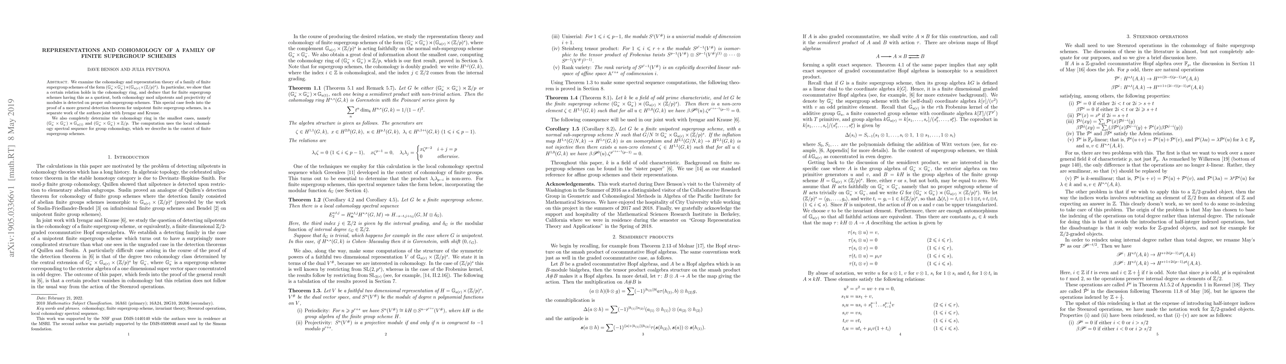 This paper investigates the representation and cohomology of a family of finite supergroup schemes, proving a specific relation in their cohomology ring and demonstrating that module projectivity and cohomology mod nilpotents are detectable in certain sub-supergroup schemes. The findings support a broader detection theorem for unipotent finite supergroup schemes. The authors also determine the cohomology rings for the simplest cases using the local cohomology spectral sequence.