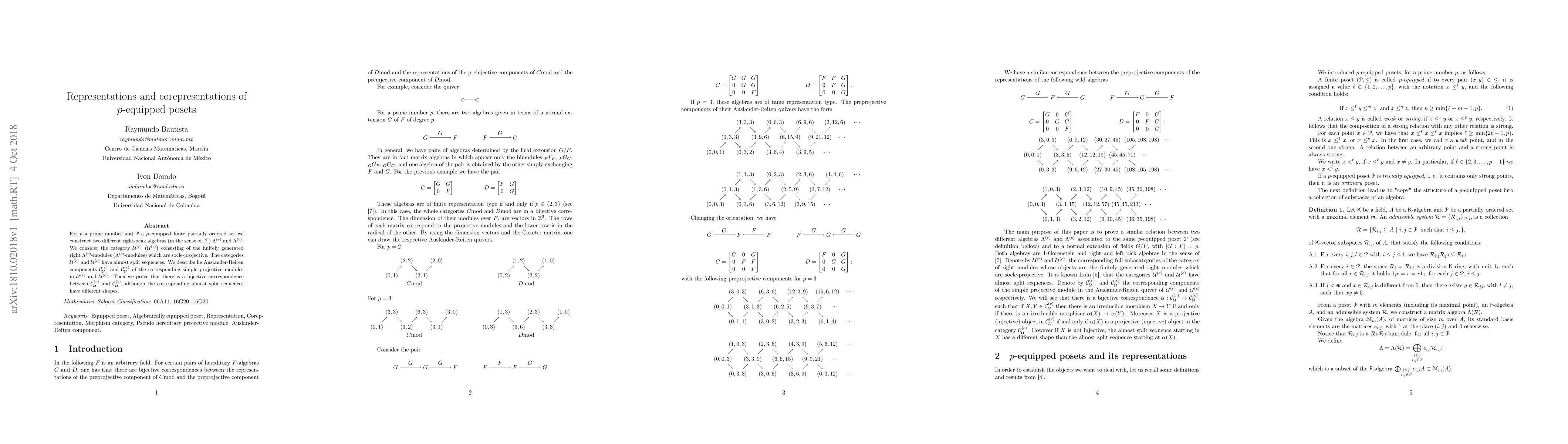 For $p$ a prime number and $\mathscr{P}$ a $p$-equipped finite partially ordered set we construct two different right-peak algebras (in the sense of \cite{KS}) $\Lambda^{(r)}$ and $\Lambda^{(c)}$. We consider the category $\mathcal{U}^{(r)}$ $\left(\mathcal{U}^{(c)}\right)$ consisting of the finitely generated right $\Lambda^{(r)}$-modules ($\Lambda^{(c)}$-modules) which are socle-projective. The categories $\mathcal{U}^{(r)}$ and $\mathcal{U}^{(c)}$ have almost split sequences. We describe he Auslander-Reiten components $\mathcal{C}_{\mathcal{U}}^{(r)}$ and $\mathcal{C}_{\mathcal{U}}^{(c)}$ of the corresponding simple projective modules in $\mathcal{U}^{(r)}$ and $\mathcal{U}^{(c)}$. Then we prove that there is a bijective correspondence between $\mathcal{C}_{\mathcal{U}}^{(r)}$ and $\mathcal{C}_{\mathcal{U}}^{(c)}$, although the corresponding almost split sequences have different shapes.