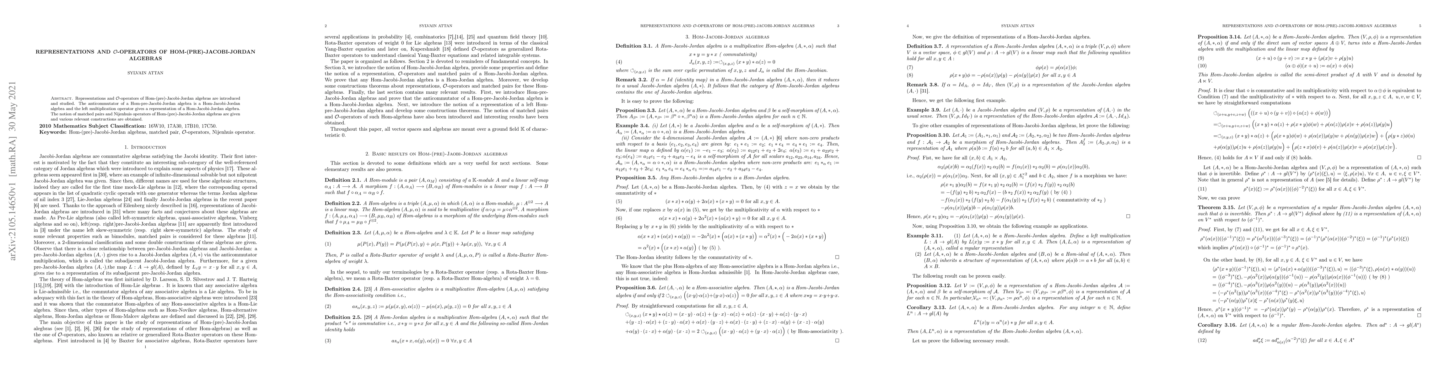 This paper introduces and investigates representations and O-operators of Hom-(pre)-Jacobi-Jordan algebras, establishing that their anticommutators form Hom-Jacobi-Jordan algebras and presenting matched pairs and Nijenhuis operators for these structures.