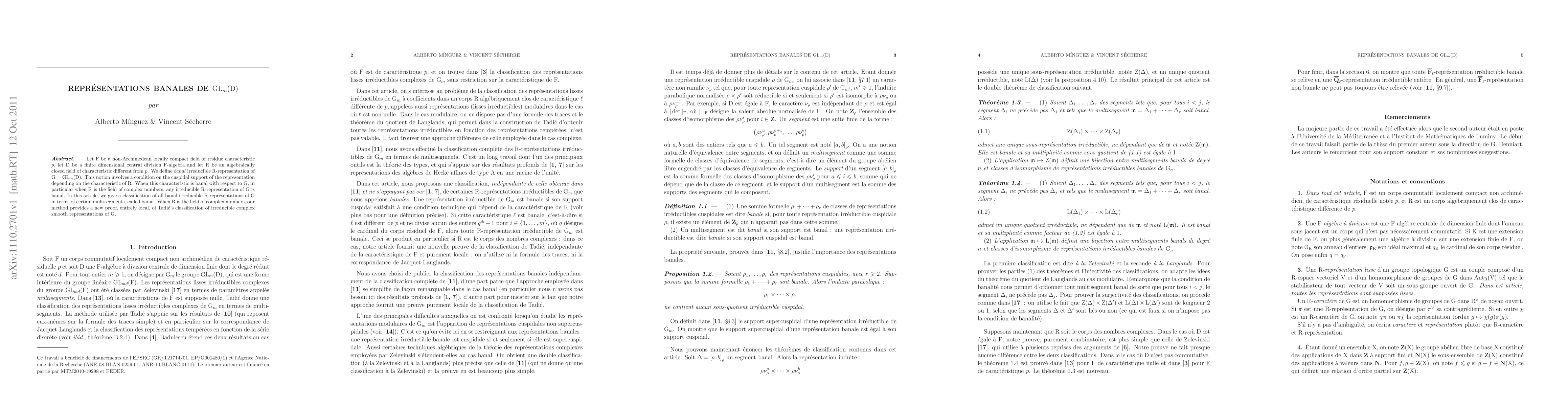 The paper introduces the notion of 'banal' R-representations for G = GL(m, D), generalizing the concept of 'characteristic banality' for G, and relies on a condition concerning the cuspidal support of the representation and its dependence on the characteristic of R.