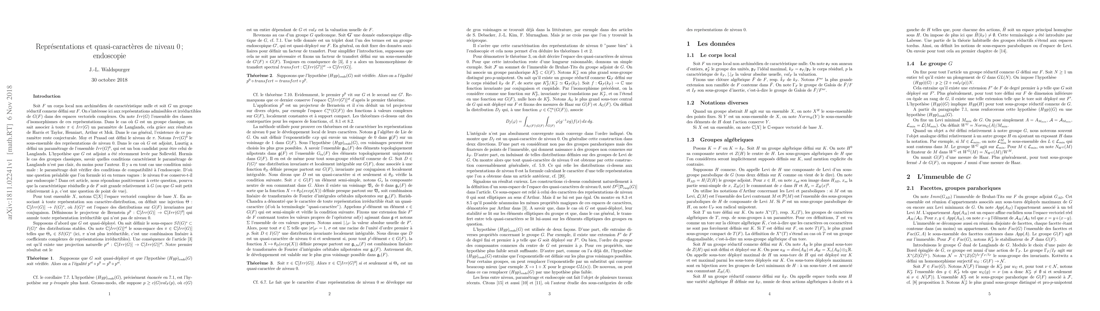 Let F be a finite extension of Q_p and let G be a connected reductive group over F. We assume that p is big relatively to G. Let G' be an endoscopic group of G. Following Arthur, we have, roughly speaking, a spectral transfer which, to a stable finite linear combination of irreducible admissible representations of G'(F), associates a finite linear combination of irreducible admissible representations of G(F). Let p^{0,G} be the Bernstein's projector such that, for an irreducible admissible representation $\pi$ of G(F), we have p^{0,G}($\pi$)=$\pi$ if $\pi$ has level 0 and p^{0,G}($\pi$)=0 if $\pi$ has strictly positive level. Define similarly p^{0,G'}. We prove that p^{0,G'} preserves the space of stable finite linear combination of irreducible admissible representations of G'(F) and that p^{0,G} transfer=transfer p^{0,G'}.
