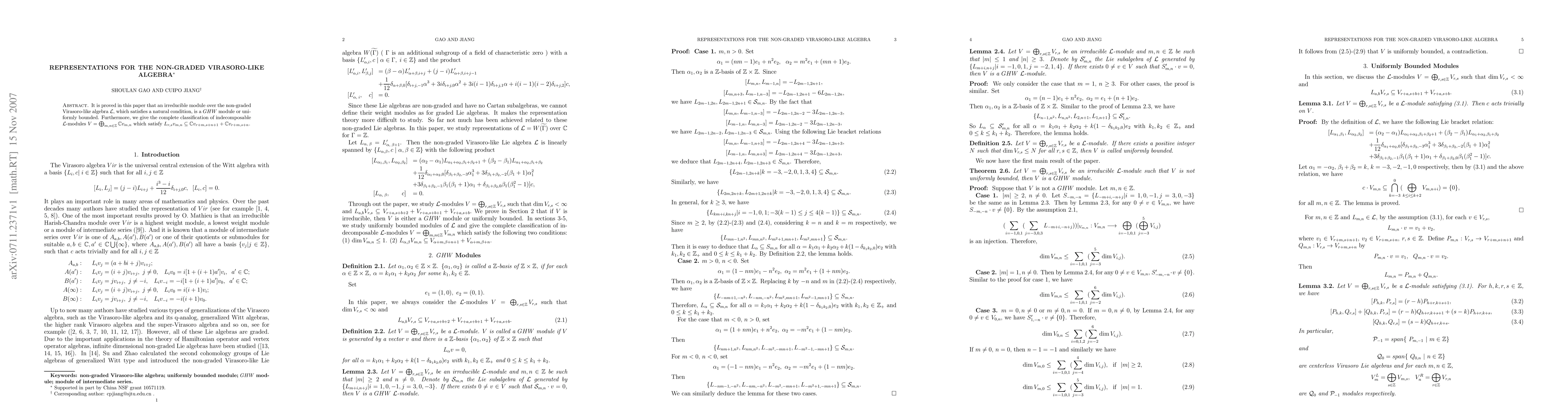 It is proved that an irreducible module over the non-graded Virasoro-like algebra, which satisfies a natural condition, is a GHW module or uniformly bounded. Furthermore, the classification of some uniformly bounded modules is given.