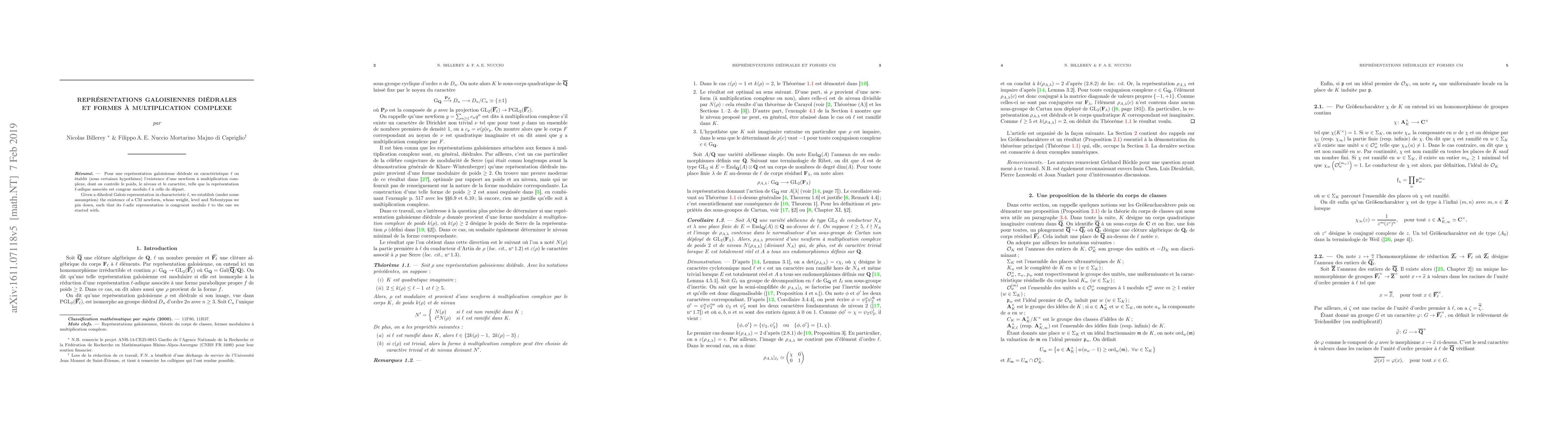 Pour une repr\'esentation galoisienne di\'edrale en caract\'eristique l on \'etablit (sous certaines hypoth\`eses) l'existence d'une newform \`a multiplication complexe, dont on contr\^ole le poids, le niveau et le caract\`ere, telle que la repr\'esentation l-adique associ\'ee est congrue modulo l \`a celle de d\'epart. Given a dihedral Galois representation in characteristic l, we establish (under some assumption) the existence of a CM newform, whose weight, level and Nebentypus we pin down, such that its l-adic representation is congruent modulo l to the one we started with.