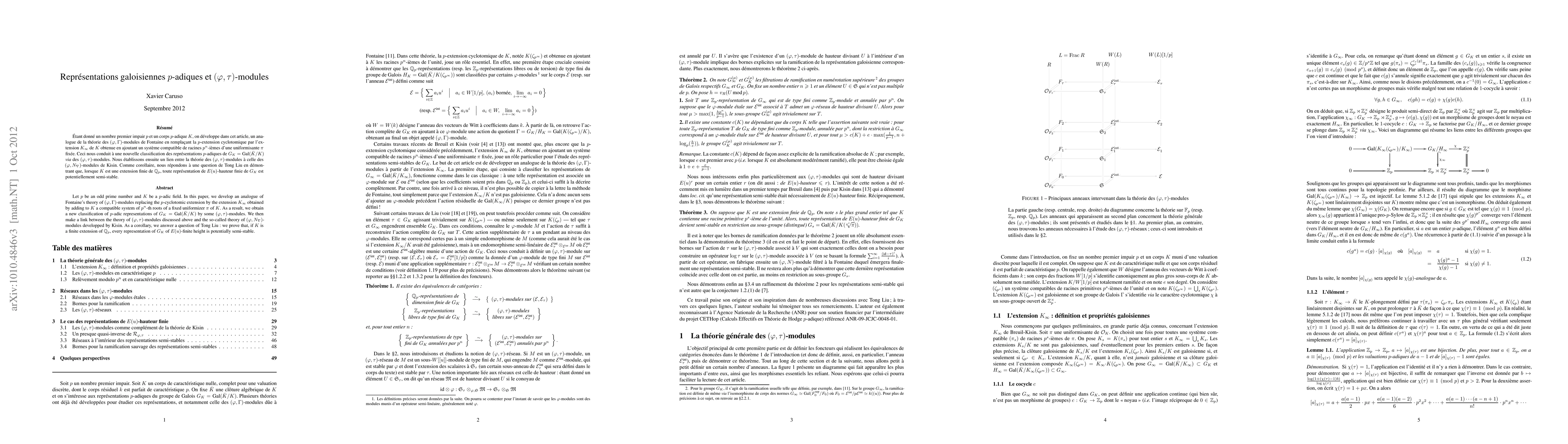 Let p be an odd prime number and K be a p-adic field. In this paper, we develop an analogue of Fontaine's theory of (phi,Gamma)-modules replacing the p-cyclotomic extension by the extension K_infty obtained by adding to K a compatible system of p^n-th roots of a fixed uniformizer pi of K. As a result, we obtain a new classification of p-adic representations of G_K = Gal(Kbar/K) by some (phi, \tau)-modules. We then make a link between the theory of (phi,tau)-modules discussed above and the so-called theory of (phi,N_nabla)$-modules developped by Kisin. As a corollary, we answer a question of Tong Liu: we prove that, if K is a finite extension of Q_p, every representation of G_K of E(u)-finite height is potentially semi-stable.