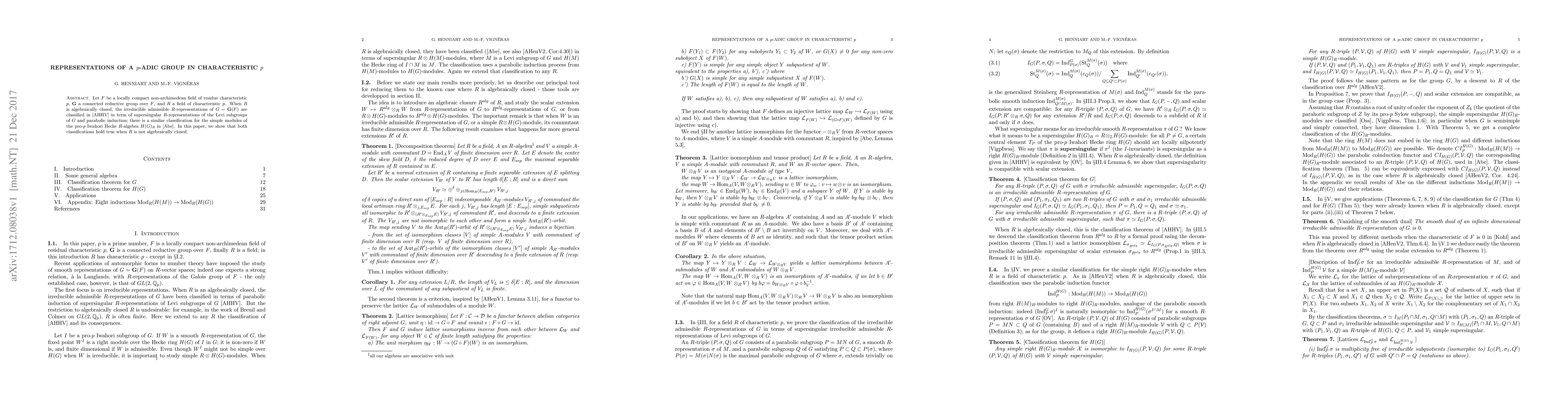 Let $F$ be a locally compact non-archimedean field of residue characteristic $p$, $\textbf{G}$ a connected reductive group over $F$, and $R$ a field of characteristic $p$. When $R$ is algebraically closed, the irreducible admissible $R$-representations of $G=\textbf{G}(F)$ are classified in term of supersingular $R$-representations of the Levi subgroups of $G$ and parabolic induction; there is a similar classification for the simple modules of the pro-$p$ Iwahori Hecke $R$-algebra. In this paper, we show that both classifications hold true when $R$ is not algebraically closed.
