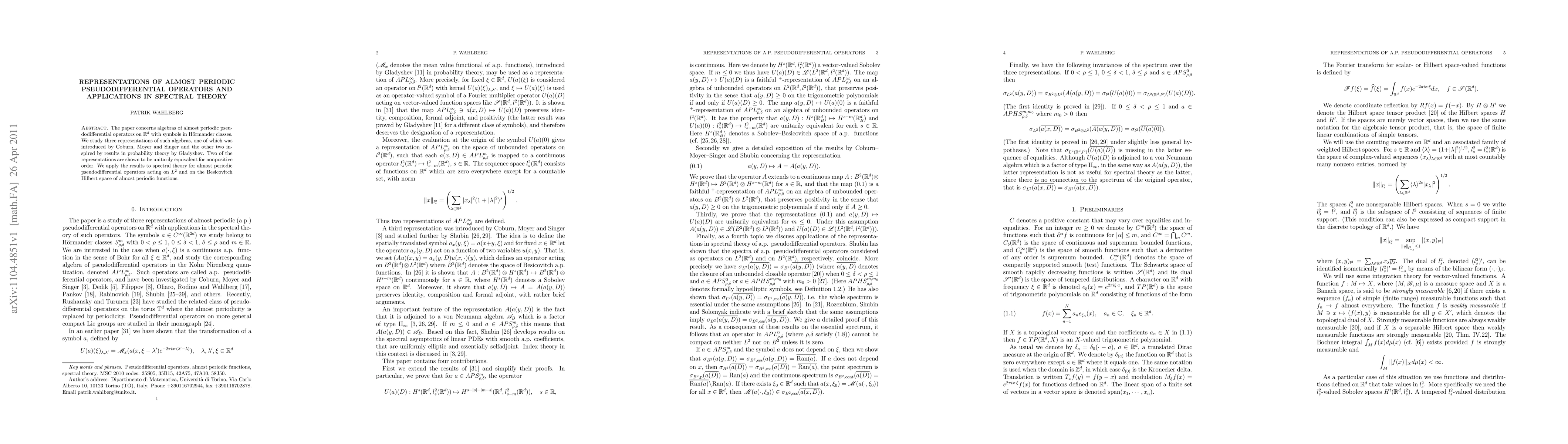 The paper introduces and analyzes representations of almost periodic pseudodifferential operators, demonstrating unitary equivalence for certain cases and applying these to spectral theory.