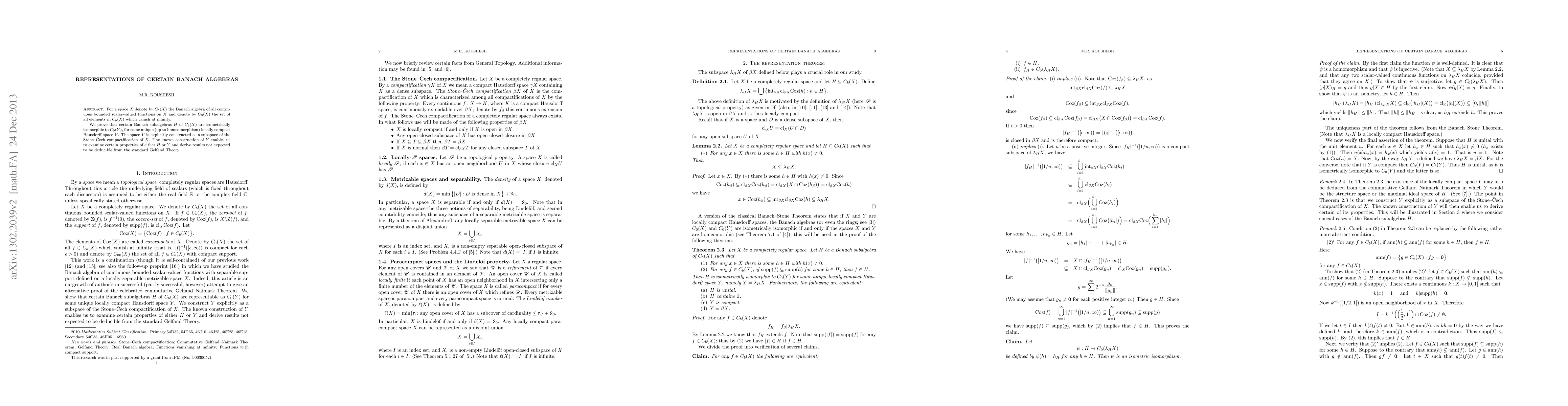 For a space $X$ denote by $C_b(X)$ the Banach algebra of all continuous bounded scalar-valued functions on $X$ and denote by $C_0(X)$ the set of all elements in $C_b(X)$ which vanish at infinity. We prove that certain Banach subalgebras $H$ of $C_b(X)$ are isometrically isomorphic to $C_0(Y)$, for some unique (up to homeomorphism) locally compact Hausdorff space $Y$. The space $Y$ is explicitly constructed as a subspace of the Stone--\v{C}ech compactification of $X$. The known construction of $Y$ enables us to examine certain properties of either $H$ or $Y$ and derive results not expected to be deducible from the standard Gelfand Theory.
