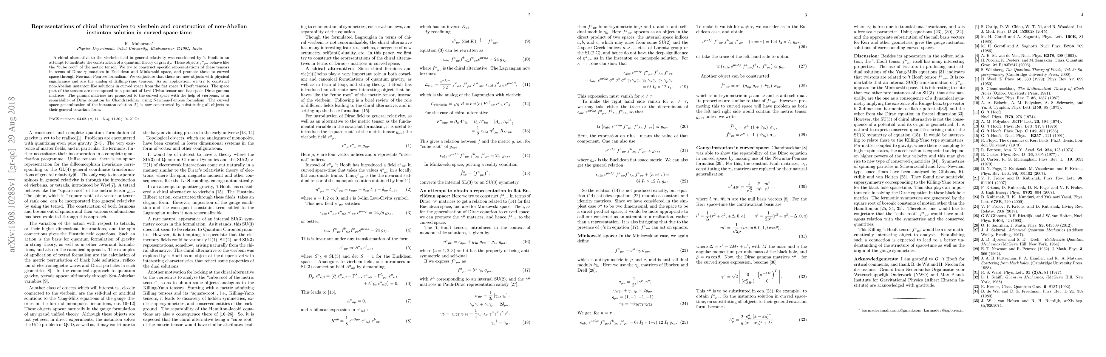 This paper explores a chiral alternative to the vierbein field proposed by 't Hooft to aid in constructing a quantum theory of gravity. It constructs representations of these tensors in terms of Dirac matrices and generalizes them to curved space using the Newman-Penrose formalism, aiming to find non-Abelian instanton solutions in curved space.
