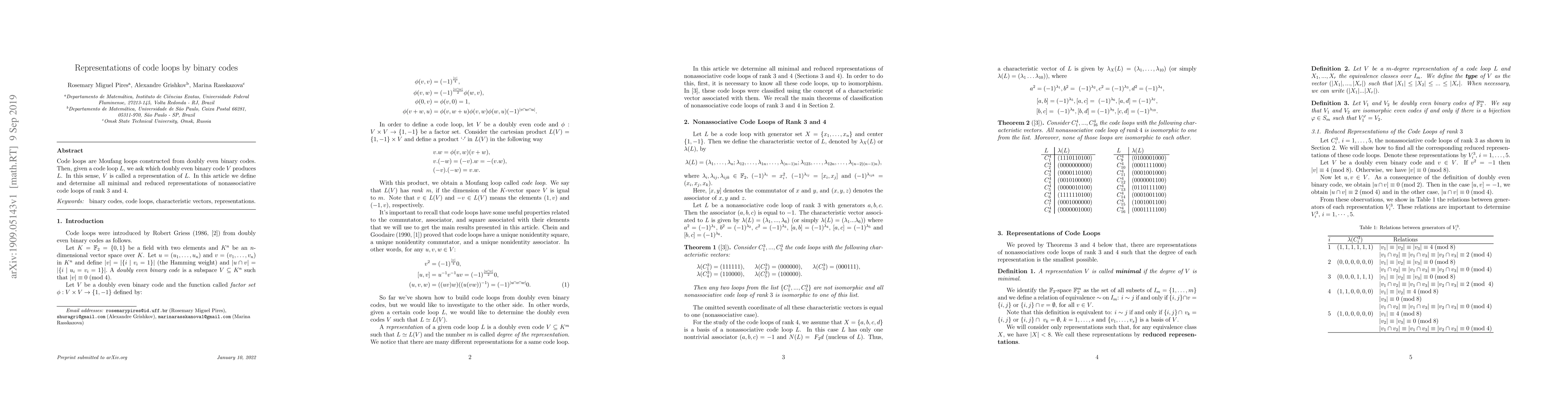 This paper explores the construction of Moufang loops from doubly even binary codes and identifies minimal and reduced representations of nonassociative code loops of ranks 3 and 4, determining all such representations.