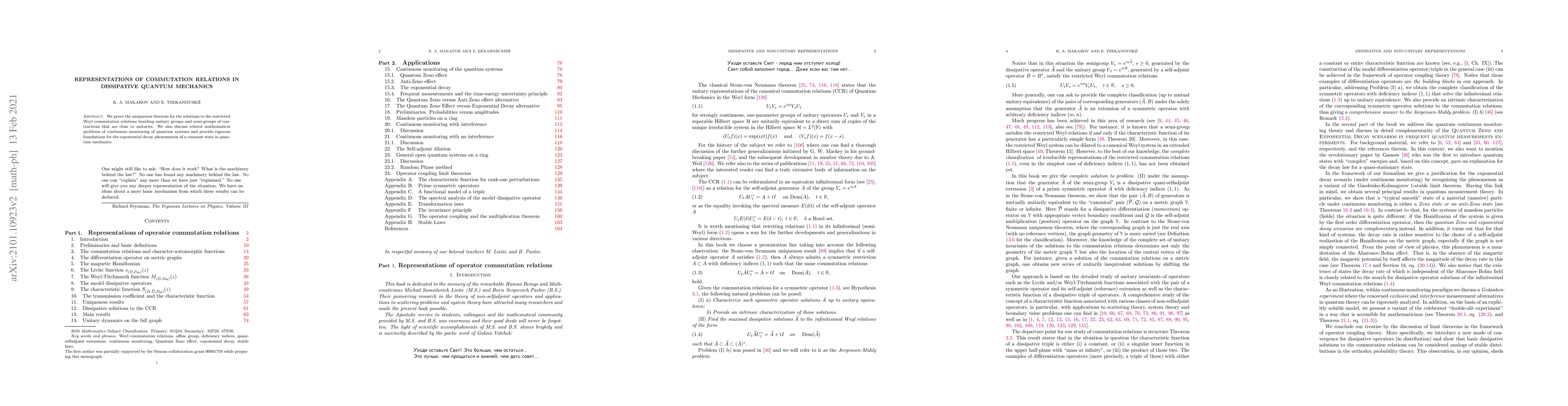 We prove the uniqueness theorem for the solutions to the restricted Weyl commutation relations braiding unitary groups and semi-groups of contractions that are close to unitaries. We also discuss related mathematical problems of continuous monitoring of quantum systems and provide rigorous foundations for the exponential decay phenomenon of a resonant state in quantum mechanics.