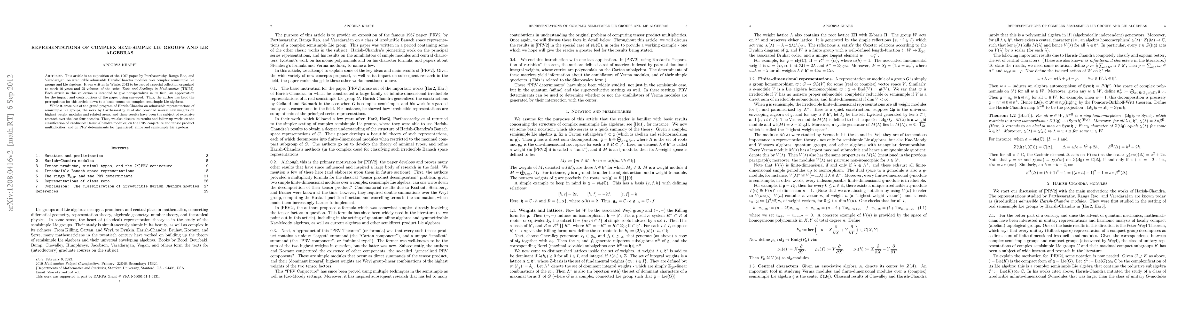 This article surveys the 1967 paper by Parthasarathy, Ranga Rao, and Varadarajan on irreducible admissible Harish-Chandra modules, highlighting its foundational contributions to the study of complex semisimple Lie groups and algebras, and its enduring influence on subsequent research.