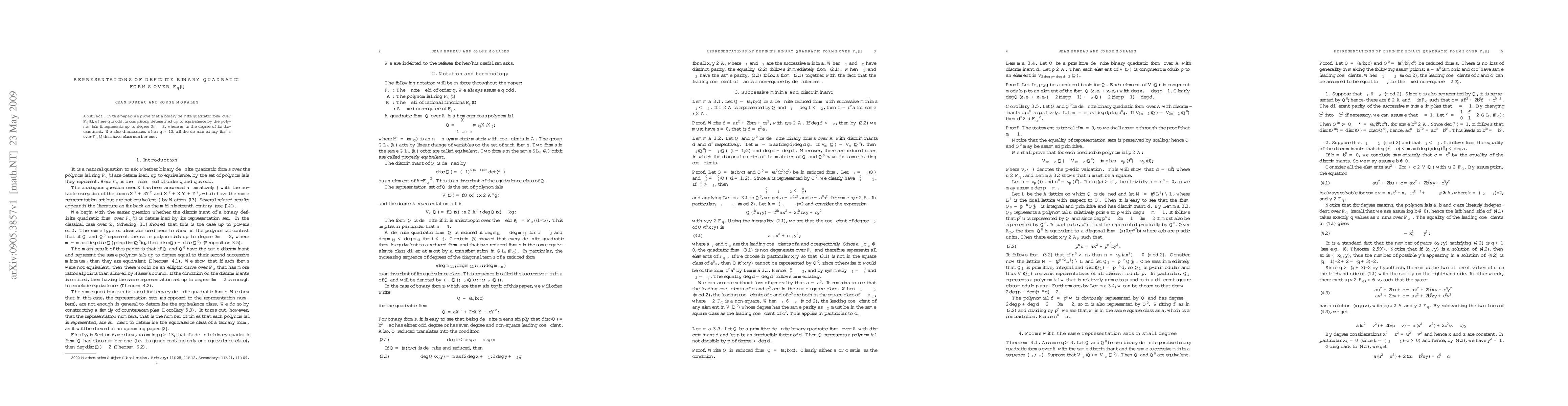 This paper establishes that binary definite quadratic forms over the ring F_q[t] are fully specified by the polynomials they represent up to degree 3m-2, with m being the discriminant's degree. It also identifies all definite binary forms over F_q[t] with class number one when q exceeds 13.