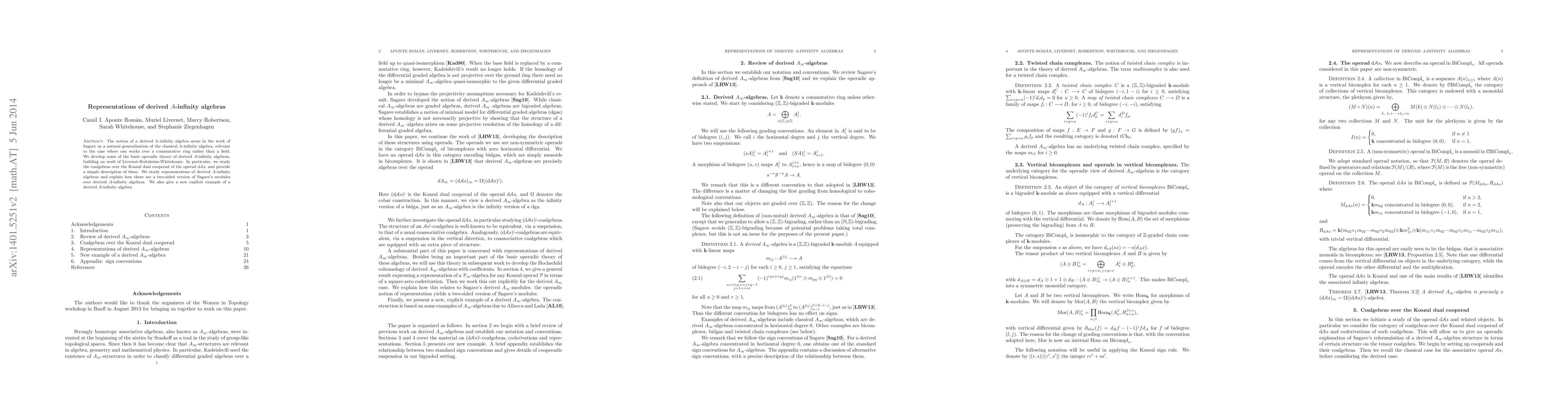The paper develops foundational operadic theory for derived A-infinity algebras and explores their representations as two-sided modules, providing a novel example of such an algebra. It also offers a simple description of coalgebras over the Koszul dual cooperad of the operad dAs.