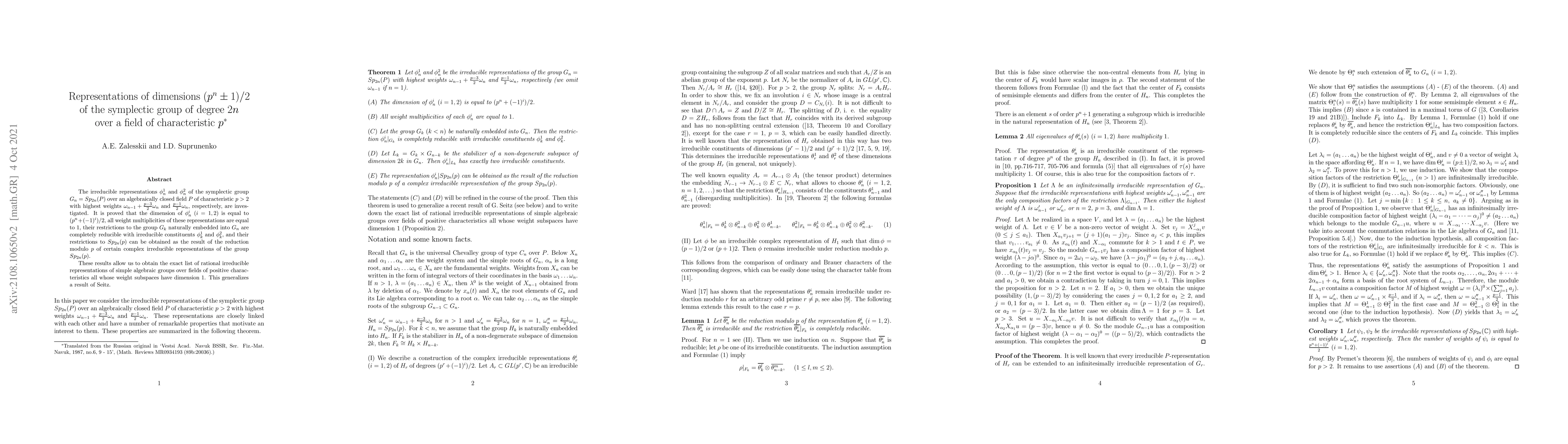 Researchers investigated the representations of symplectic groups over a field of characteristic p and found that their dimensions and weight multiplicities match certain arithmetic expressions.