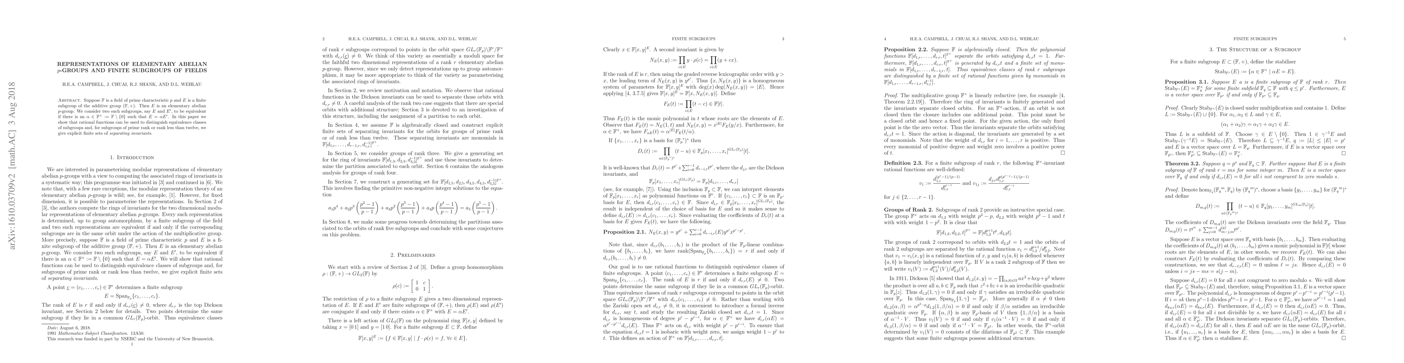 Suppose $\mathbb{F}$ is a field of prime characteristic $p$ and $E$ is a finite subgroup of the additive group $(\mathbb{F},+)$. Then $E$ is an elementary abelian $p$-group. We consider two such subgroups, say $E$ and $E'$, to be equivalent if there is an $\alpha\in\mathbb{F}^*:=\mathbb{F}\setminus\{0\}$ such that $E=\alpha E'$. In this paper we show that rational functions can be used to distinguish equivalence classes of subgroups and, for subgroups of prime rank or rank less than twelve, we give explicit finite sets of separating invariants.