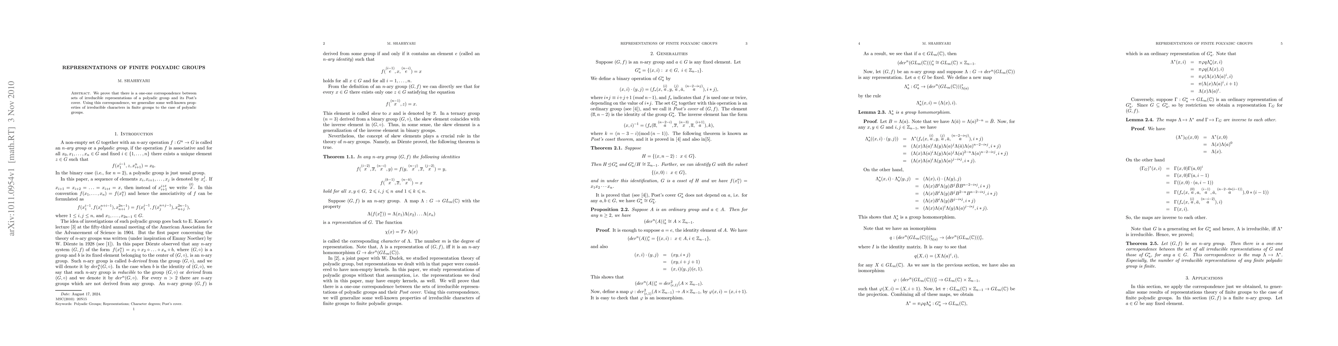 This paper establishes a one-to-one correspondence between irreducible representations of a polyadic group and its Post's cover, thereby extending familiar properties of finite group characters to polyadic groups.
