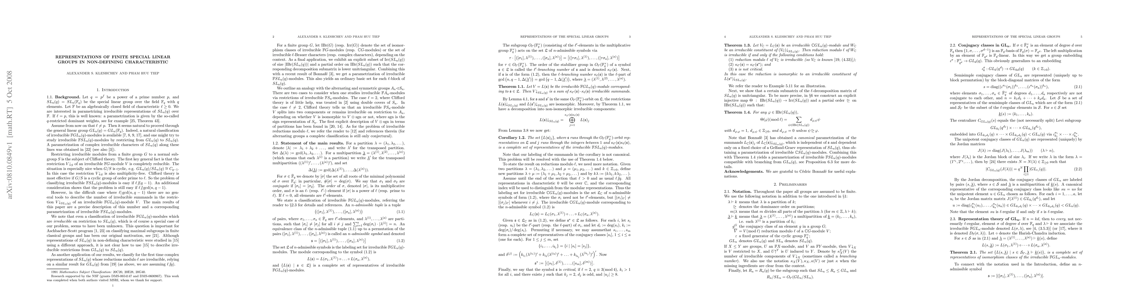 Researchers determine how many irreducible summands exist in a specific type of representation of the general linear group over a finite field, leading to a new way to label and classify representations of the special linear group.