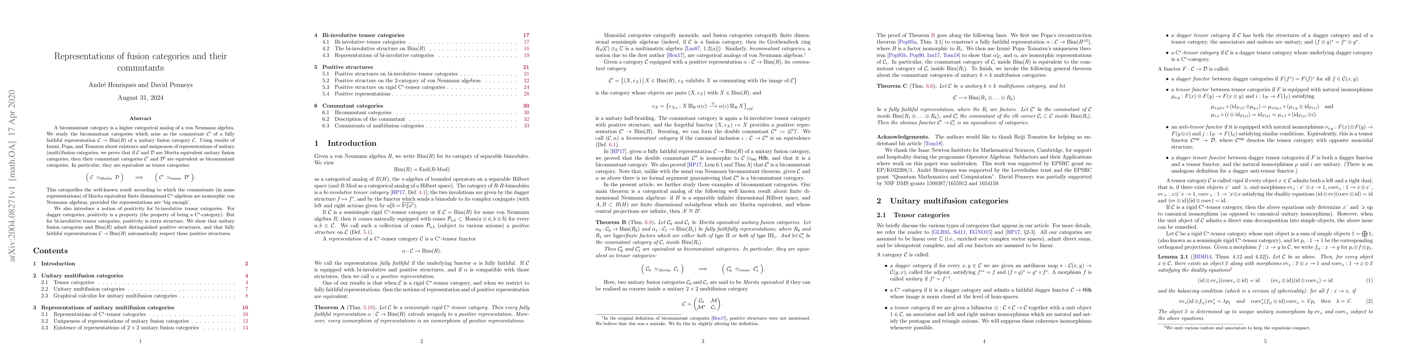 This paper studies bicommutant categories arising from fully faithful representations of unitary fusion categories into bimodules over a ring. It proves that Morita equivalent fusion categories yield equivalent bicommutant categories, categorifying the isomorphism of commutants for Morita equivalent C*-algebras. The paper also introduces the concept of positivity for bi-involutive tensor categories, showing that unitary fusion categories and bimodules admit distinguished positive structures respected by faithful representations.