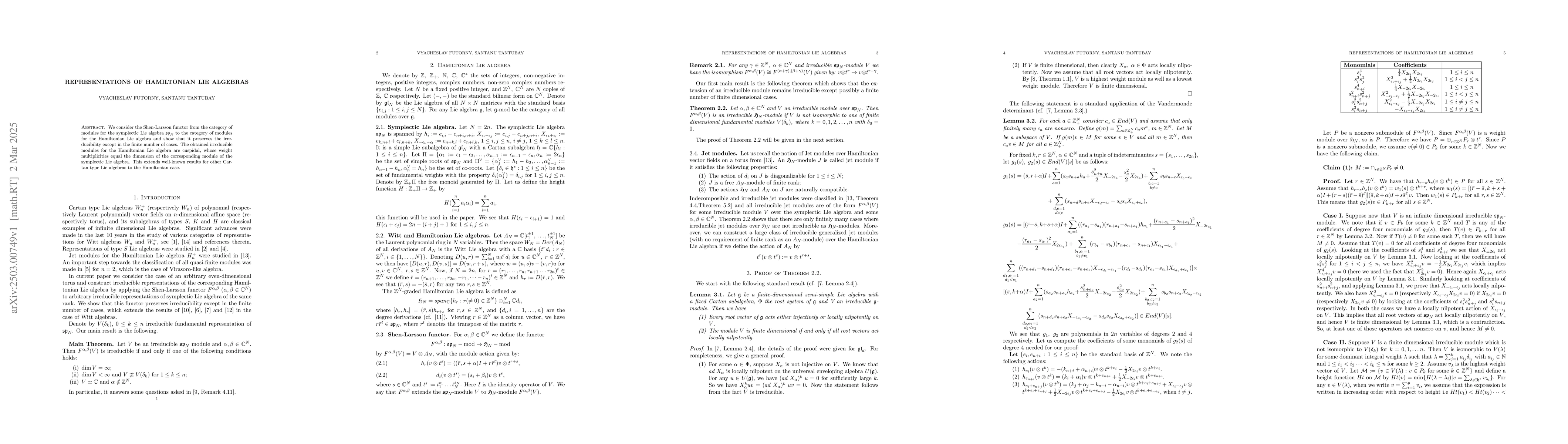 The research employs the Shen-Larsson functor to examine modules for the symplectic Lie algebra $\s$ and their correspondence with modules for the Hamiltonian Lie algebra.
