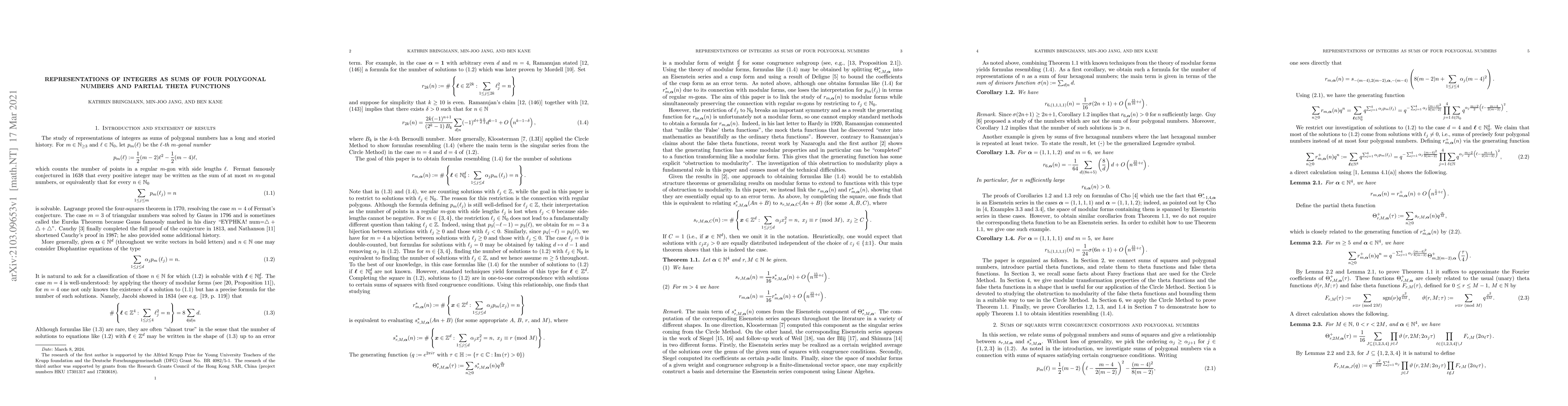 This paper investigates representations of integers as sums of up to four distinct polygonal numbers, showing that the number of non-negative representations is asymptotically equivalent to one-sixteenth of the total representations with arbitrary integer parameters.