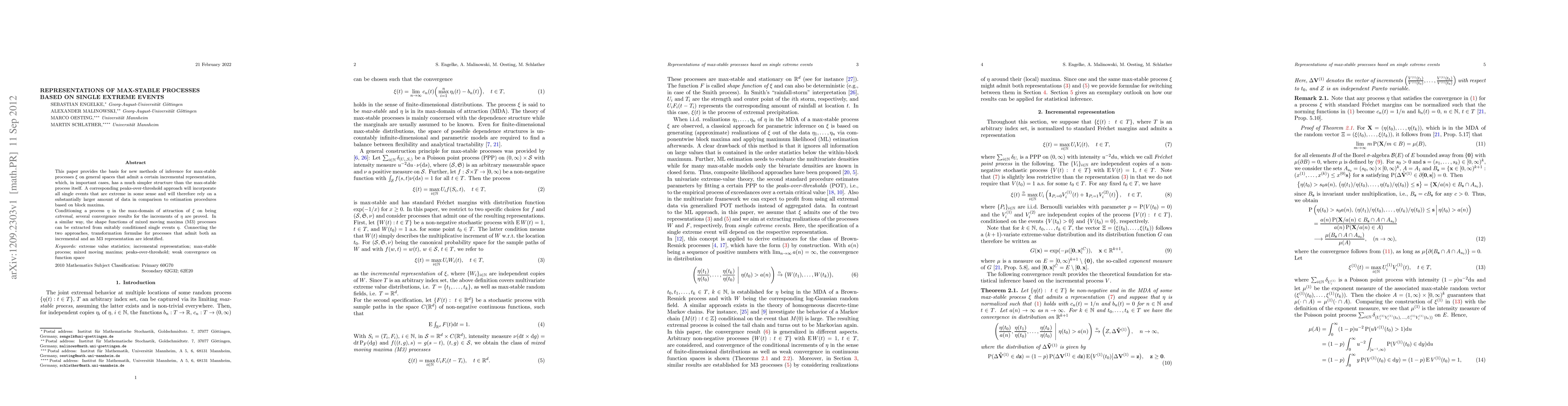 This paper introduces new methods for inferring max-stable processes by leveraging single extreme events, offering a simpler incremental representation and a peaks-over-threshold approach that uses more data than block maxima methods. It also provides convergence results for extremal processes and transformation formulae connecting incremental and mixed moving maxima representations.