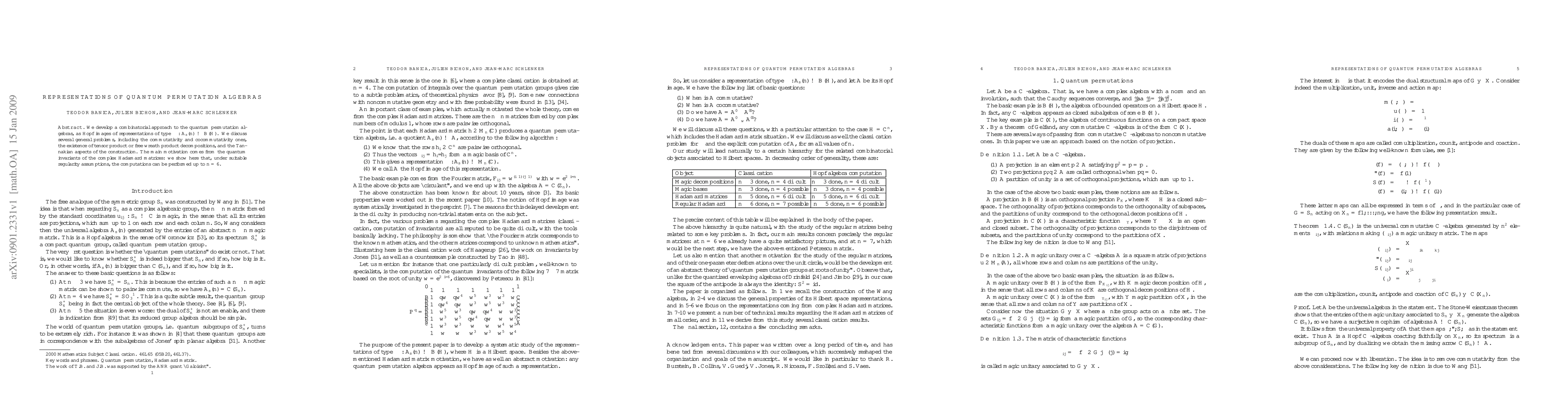 We develop a combinatorial approach to the quantum permutation algebras, as Hopf images of representations of type $\pi:A_s(n)\to B(H)$. We discuss several general problems, including the commutativity and cocommutativity ones, the existence of tensor product or free wreath product decompositions, and the Tannakian aspects of the construction. The main motivation comes from the quantum invariants of the complex Hadamard matrices: we show here that, under suitable regularity assumptions, the computations can be performed up to $n=6$.