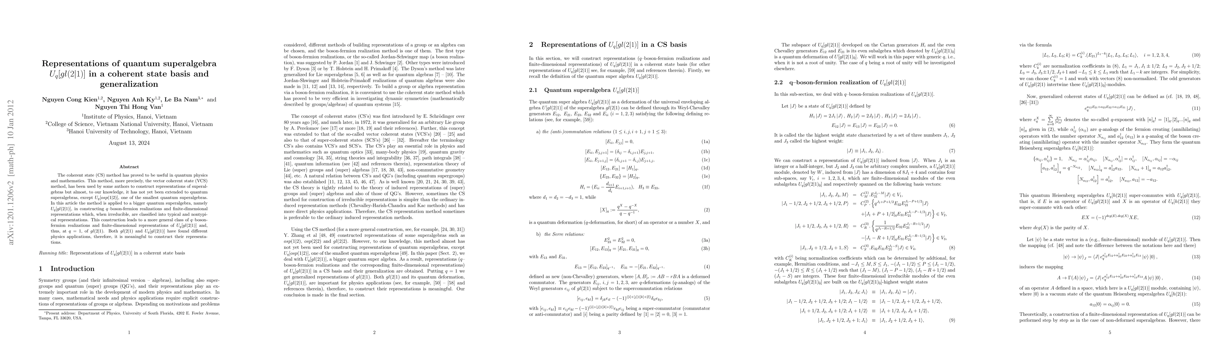 This paper applies the coherent state method to construct $q$-boson-fermion realizations and finite-dimensional representations of the quantum superalgebra $U_q[gl(2|1)]$. The construction leads to classifications of these representations and extends the method to a larger quantum superalgebra than previously done.