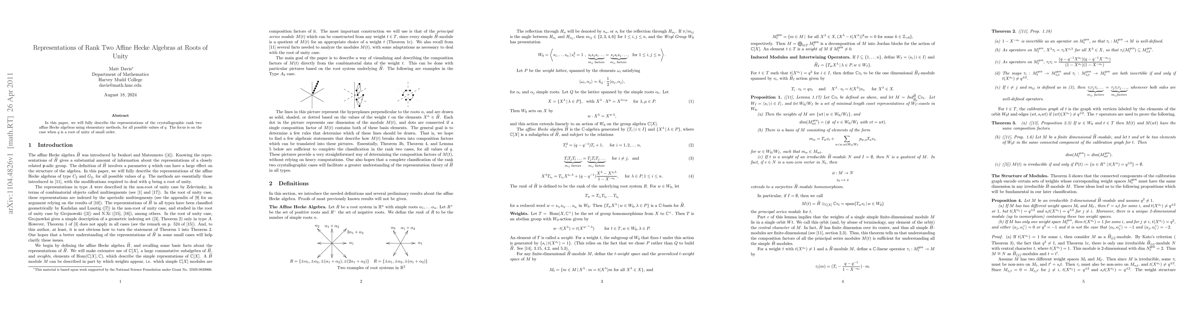 The paper employs elementary methods to describe representations of crystallographic rank two affine Hecke algebras, focusing on the case when q is a root of unity of small order.