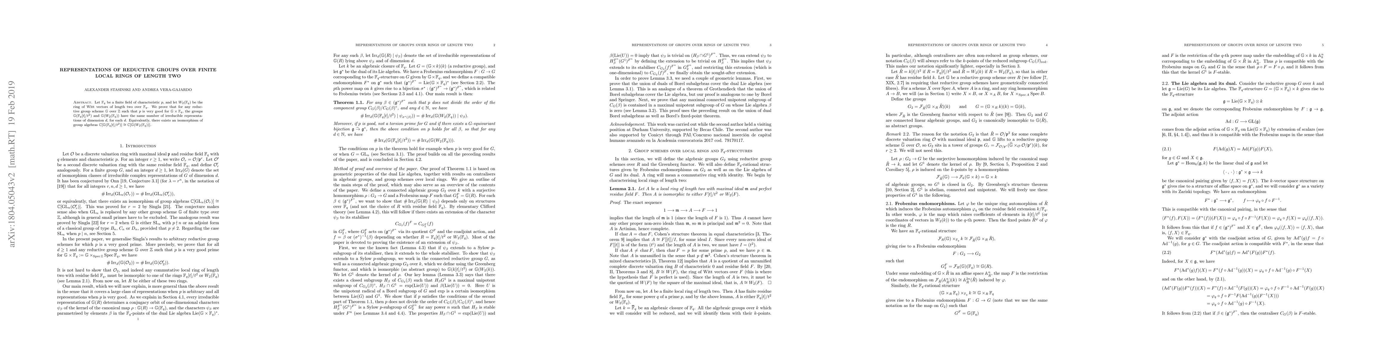 This paper proves that reductive group schemes over finite local rings of length two (specifically $W_{2}(\mathbb{F}_{q})$) and their counterparts over $\mathbb{F}_{q}[t]/t^{2}$ have an equal number of irreducible representations of any given dimension, establishing an isomorphism between their group algebras.