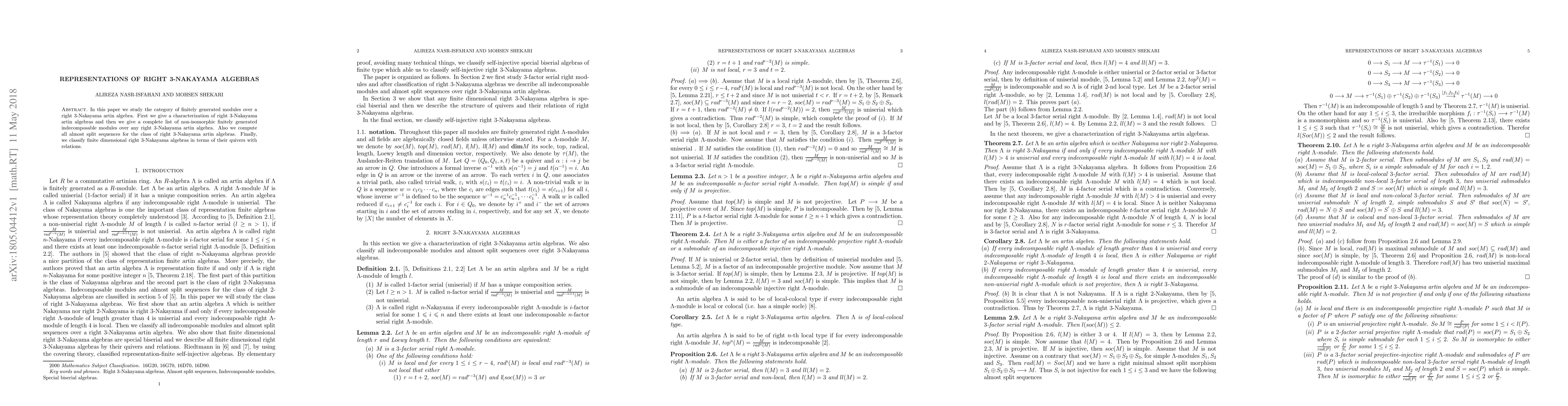This paper characterizes right $3$-Nakayama artin algebras and provides a complete list of their finitely generated indecomposable modules, computes all almost split sequences, and classifies finite dimensional right $3$-Nakayama algebras using quivers with relations.