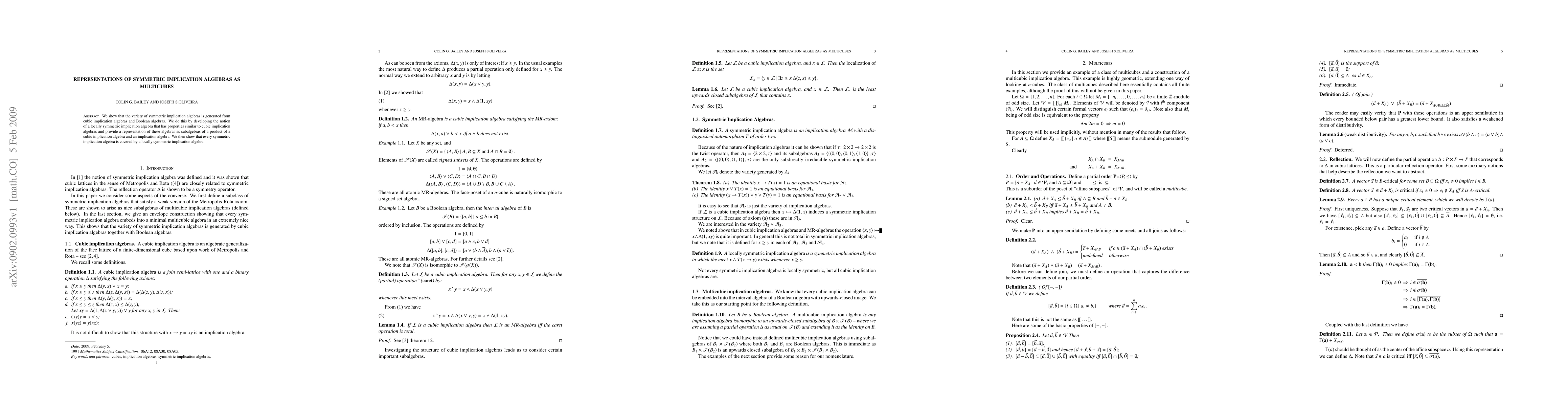 This paper demonstrates that symmetric implication algebras can be represented as subalgebras of a product involving cubic implication algebras and implication algebras, establishing a connection through locally symmetric implication algebras. It concludes that every symmetric implication algebra is covered by such a locally symmetric algebra.