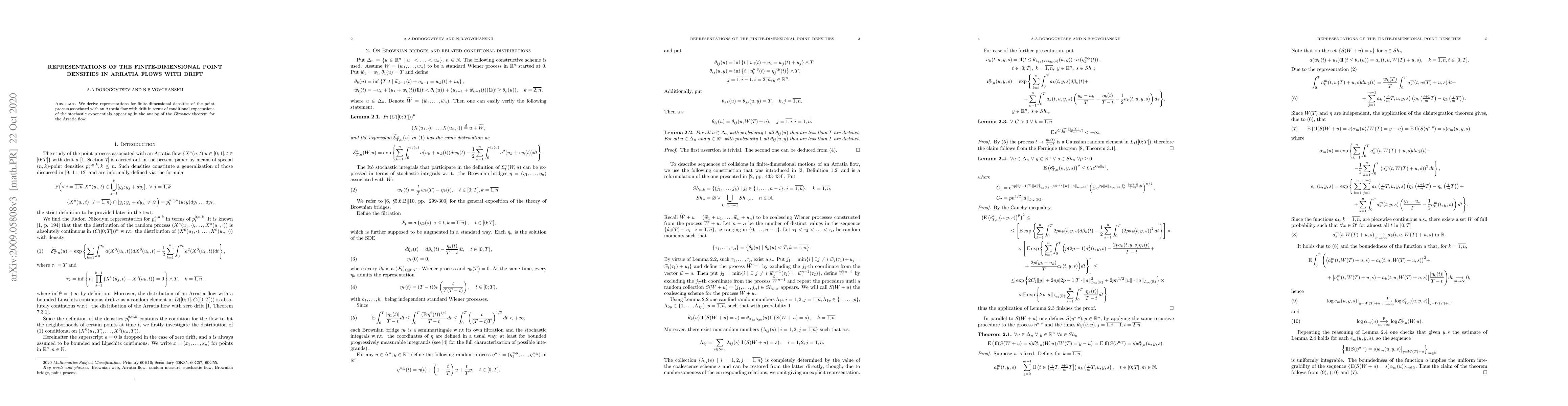 Summary: This paper derives representations of finite-dimensional point densities in Arratia flows with drift using conditional expectations of stochastic exponentials, analogous to the Girsanov theorem. The method provides a new perspective on the statistical properties of these flows.