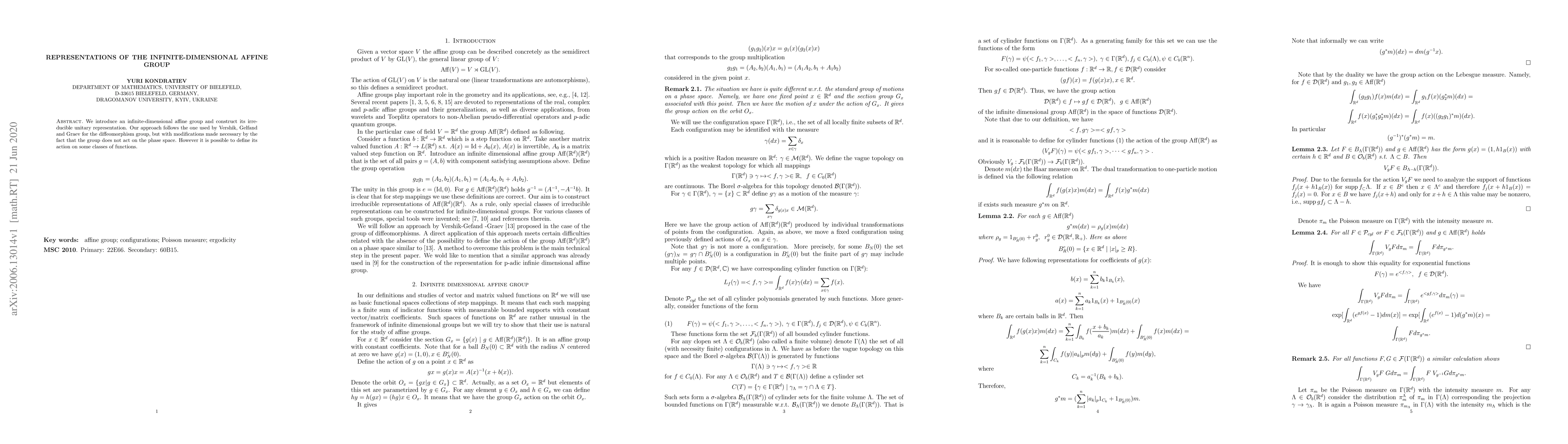 Researchers introduce an infinite-dimensional affine group representation and construct its irreducible unitary representation, adapting a method used for diffeomorphism groups to this new scenario.