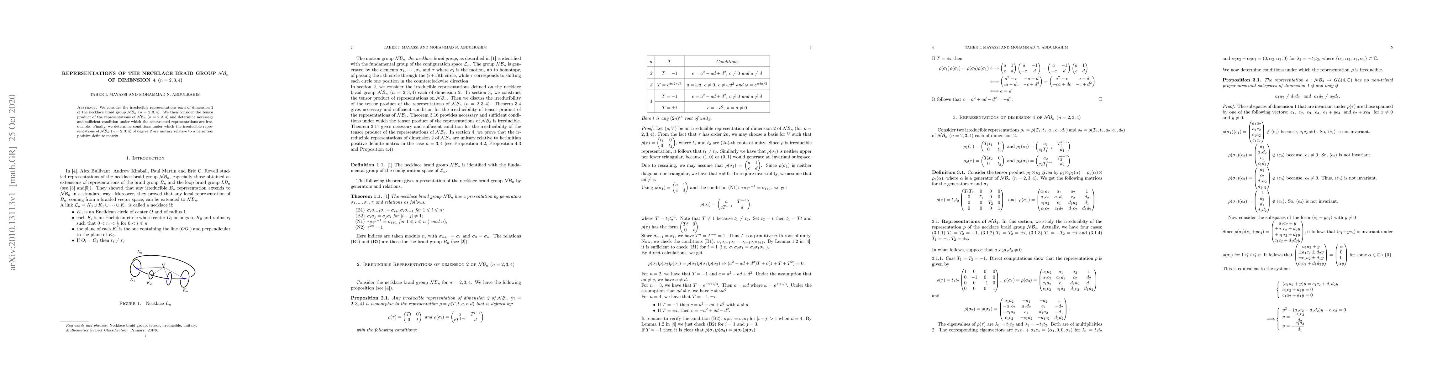 This paper investigates irreducible 2-dimensional representations of the necklace braid group $\mathcal{NB}_n$ for $n=2,3,4$, explores tensor products of these representations, and establishes conditions for the resulting representations to remain irreducible and unitary.