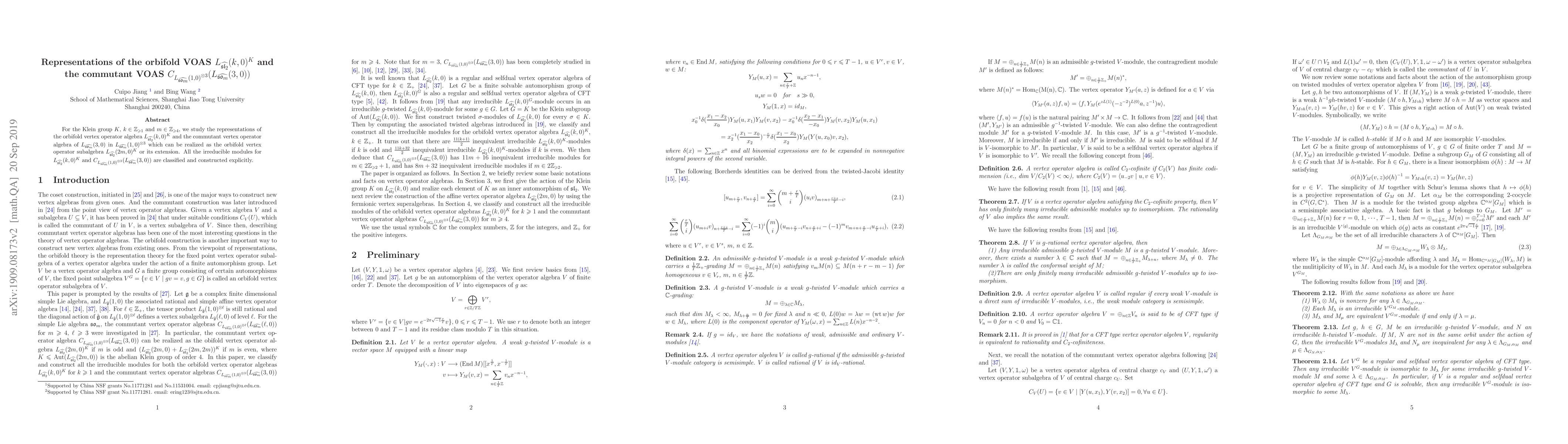 This paper classifies and constructs all irreducible modules for the orbifold vertex operator algebra $L_{\hat{\mathfrak{sl}_2}}(k,0)^{K}$ and the commutant vertex operator algebra $C_{{L_{\hat{\mathfrak{so}_m}}(1,0)}^{\otimes 3}}({L_{\hat{\mathfrak{so}_m}}(3,0)})$.