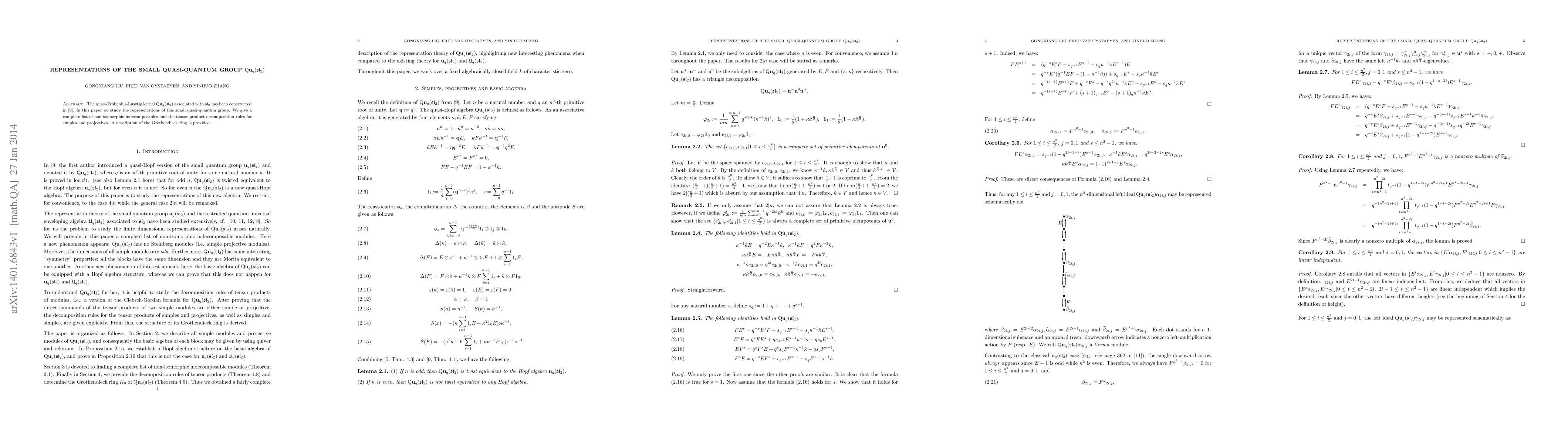 The quasi-Frobenius-Lusztig kernel ${Q}\mathbf{u}_{q}(\mathfrak{sl}_{2})$ associated with $\mathfrak{sl}_{2}$ has been constructed in \cite{Liu}. In this paper we study the representations of this small quasi-quantum group. We give a complete list of non-isomorphic indecomposables and the tensor product decomposition rules for simples and projectives. A description of the Grothendieck ring is provided.
