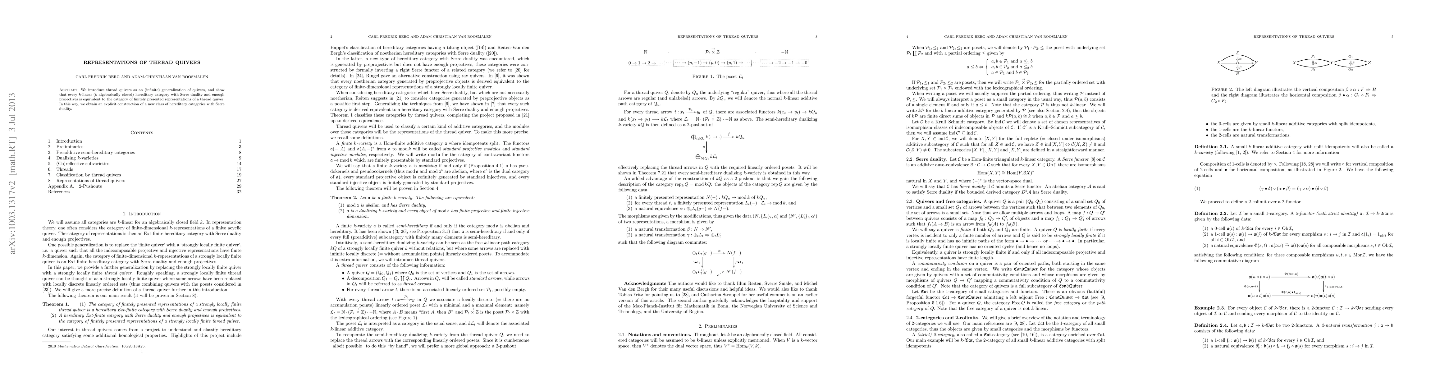 Thread quivers are an infinite generalization of quivers, and this paper demonstrates that any k-linear hereditary category with Serre duality and sufficient projectives is equivalent to the category of finitely presented representations of a thread quiver, providing a novel construction of such hereditary categories.