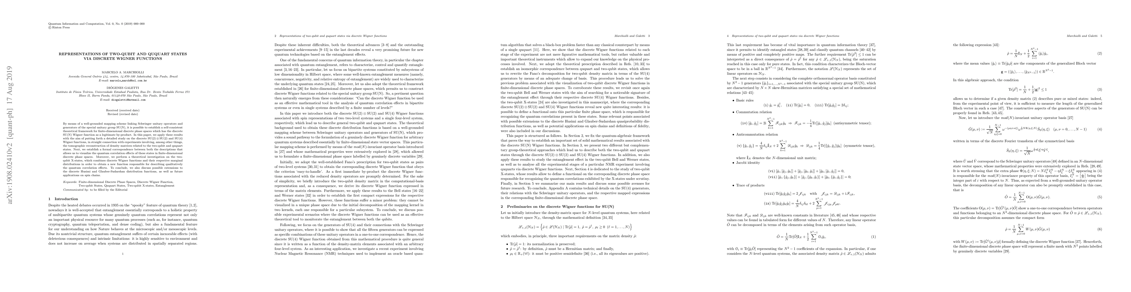 This paper develops a theoretical framework for finite-dimensional discrete phase spaces using discrete $\mathrm{SU(N)}$ Wigner functions, specifically for two-qubit and ququart states. It establishes a correspondence between these states' descriptions to visualize quantum correlations and investigates two-qubit X-states through combined discrete Wigner functions and marginal distributions.